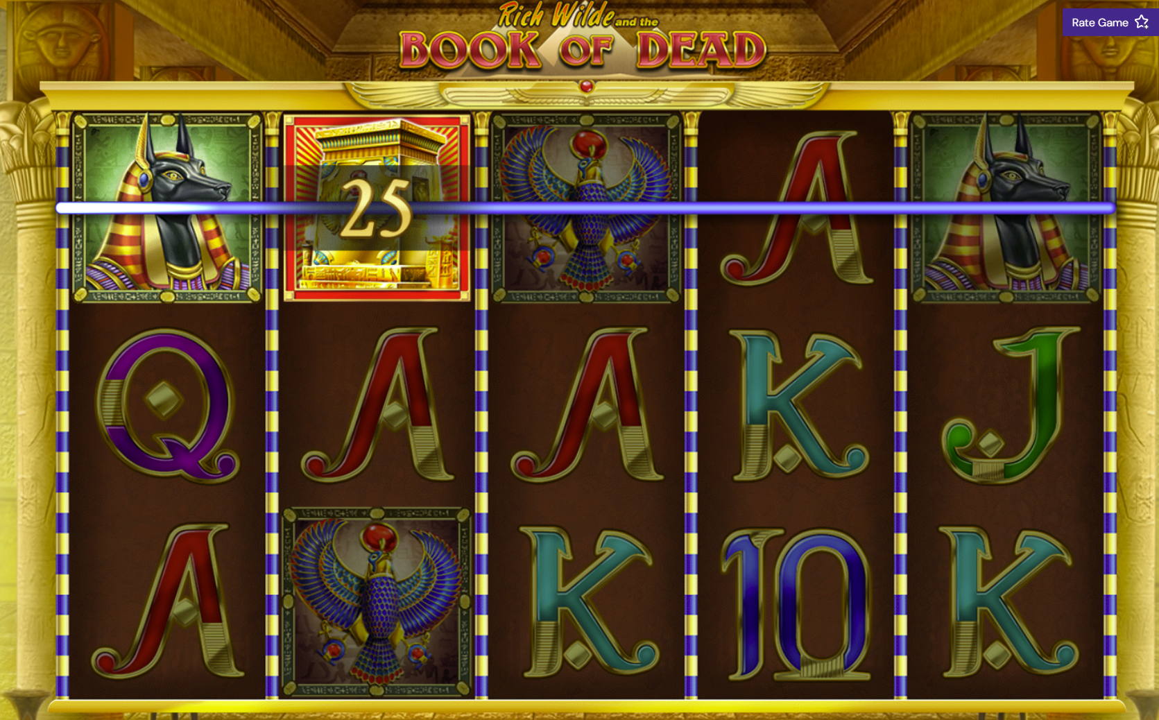The highest paying regular symbol is the Pharaoh (Rich Wilde), followed by Anubis, Horus, and Osiris. Getting the Pharaoh as your special expanding symbol offers the highest potential win, as a full screen of Pharaohs during free spins pays the game's maximum.